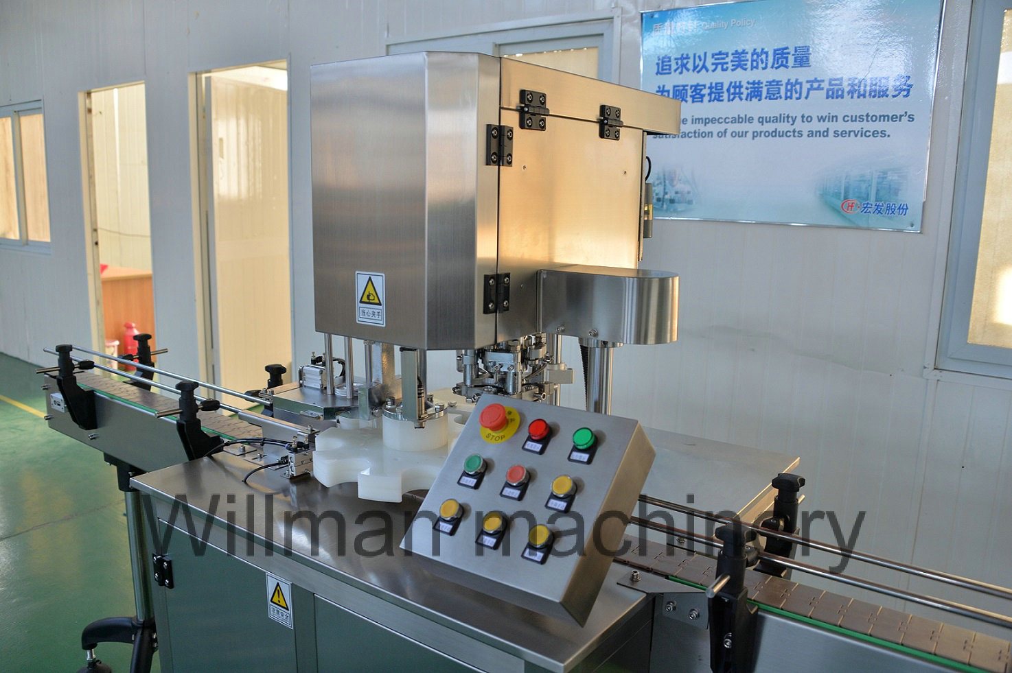 Unmanned operation, full- automatic cover lowering and sealing. Such equipment must be the main stream equipment with the consistent increase of labor force price.